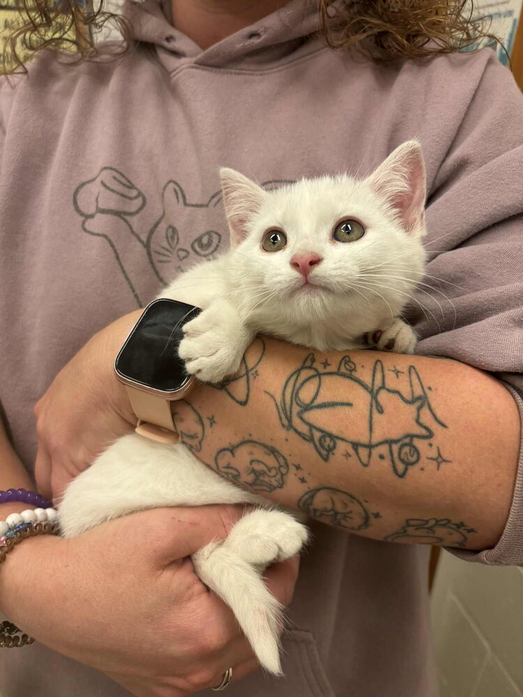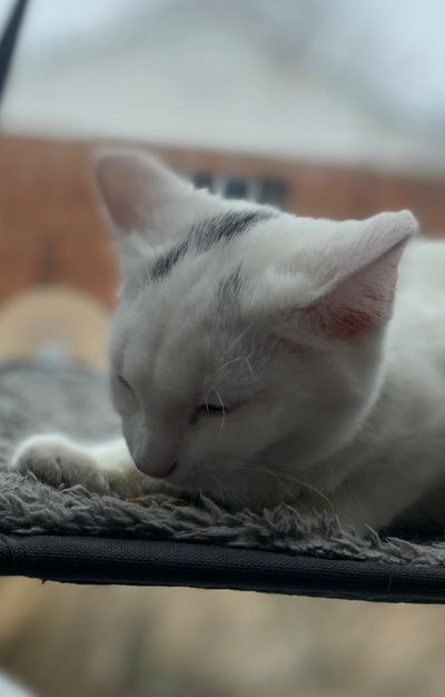 Avalanche, not a fan of big noises but a huge fan of nom-noms! She is a bit more reserved than her siblings but truly loving once she comes out of her shell. She appreciates patience, playing with her siblings, and treats! Adoption app: https://www.purrfectadditionsinc.com/adopt