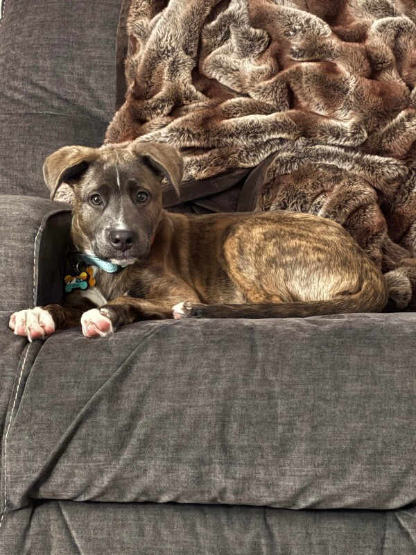 5 months old, male. Meet Boy Scout, a smart, food-motivated puppy who’s eager to please and learn! He’s doing great with his foster family’s dogs, respectful of their space but ready to play when they are. Boy Scout does well in his crate overnight and when left alone, and he’s learning to signal when he needs to go outside. He’s a quick study who already eats in his crate, sleeps through most of the night, and travels better in the car each day. With his big appetite for treats and love, Boy Scout will thrive with a patient adopter ready to keep building on his great start!