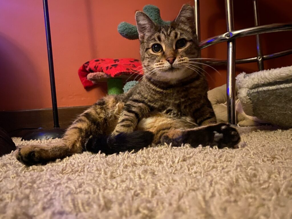 Carol here! I’m looking for my purrfect person, maybe people. I’ve raised my babies, and now I’m ready to spend the rest of my life basking in the sun. I’m on the shy side, but once I warm up I LOVE attention! My foster mom says I get the roly polies when I’m ready to be loved on. I roll all around, and purr, and knead. I even love belly rubs! I enjoy my toys, but I’m just as happy watching the bird and squirrel networks (out the window). I do have some minor skin conditions, and do better when I eat food for sensitive skin but it doesn’t have to be prescription or anything. My dream home is a quiet little place with an adult or two that will be patient with me while I get comfy. I have lived with dogs, but I would prefer another quiet kitty if there are other pets in my home. Adoption app: https://www.purrfectadditionsinc.com/adopt