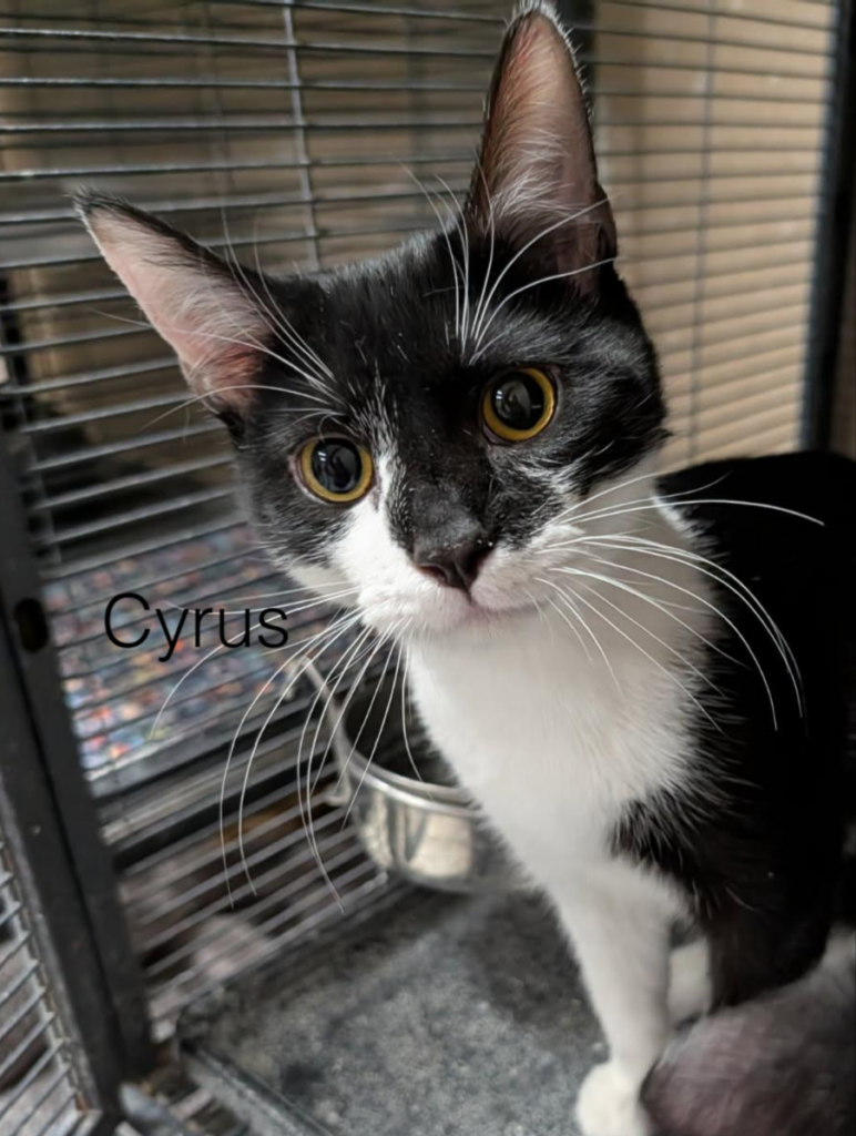 Cyrus is a sweet 6 month old kitten. He is very active and playful. He finds batting around balls and toy mice a lot of fun especially when his kitten friends will play with him. Cyrus has been with other kittens since he was born and finds a lot of comfort being with them. We believe he should be in a home with another feline. If you are looking for a feline friend with a zest for living, Cyrus is your boy. If interested, please fill out the interest form: https://pawshumane.weebly.com/interest-form.html If you are using an Apple product, please use the app for Edge or Chrome instead of Safari
