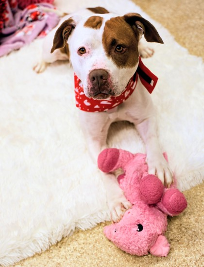 Dasiey is spayed and up to date on shots. She is 8 years old. She weighs around 70 lbs. Has been with the shelter since October. She has some skin allergies that were trying to work through. She was around a cat and did well. She is dog meet and greet required she would do well in a home with a dog that is calm and not invasive and understands that she is an older lady that just wants to keep to yourself. She loves toys balls are her favorite! She loves attention and cuddles from people. This pretty lady will snore with the best of them!