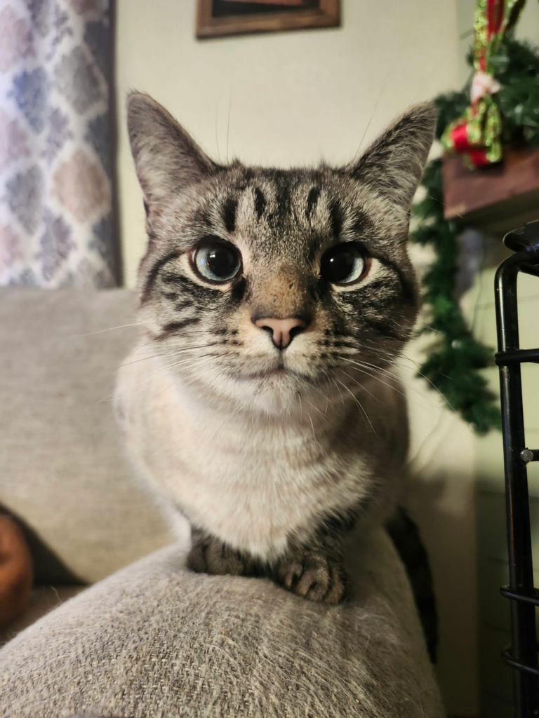Meet Meiling, a gentle soul with a story that tugs at your heart. When Mei first arrived in early September, she weighed just over 4 pounds—so thin and fragile, we weren’t sure she’d make it. But this little fighter has flourished in her devoted foster home, gaining weight and strength until she now tips the scales at a healthy 7 pounds. She’s still got a few reminders of those tough times—sometimes she’s a bit wobbly if she dashes or makes a big leap—but Mei’s spirit is unmistakable. She’s looking for a peaceful home where quiet moments are the norm. Young children and loud noises make her nervous, so she’d do best in a calm setting. Mei gets along with dogs and male cats but likes to do her own thing, watching the world from a cozy spot rather than chasing after toys. She’s not one to wrestle or roughhouse, but she’s happiest just being part of the family. Thanks to plenty of pampering (and maybe a bit of spoiling), Mei now expects her gourmet wet and dry meals twice a day—she’s earned it! She adores being brushed and will purr and “chat” her way through every grooming session. In her foster home, she’s come out of her shell and shown how sweet and loving she can be. Mei is ready for her new beginning. A patient, caring home will help her blossom even further. If your heart is open and you think you might be the right person for Mei, we’d love for you to apply today.