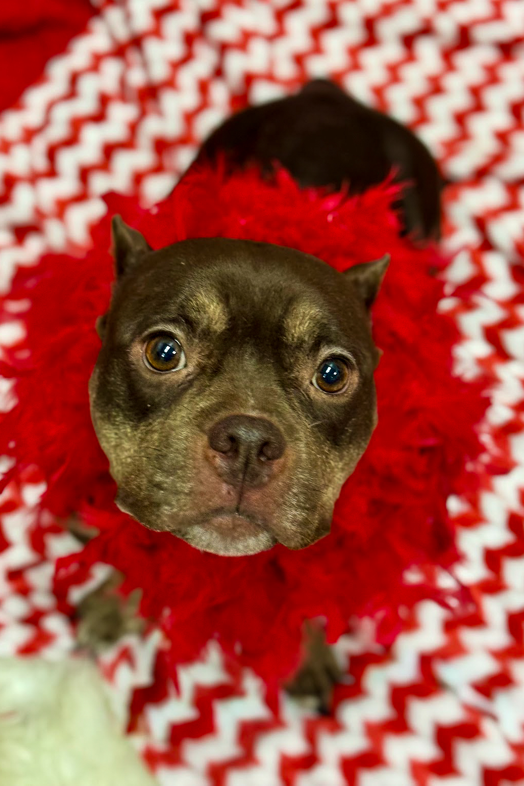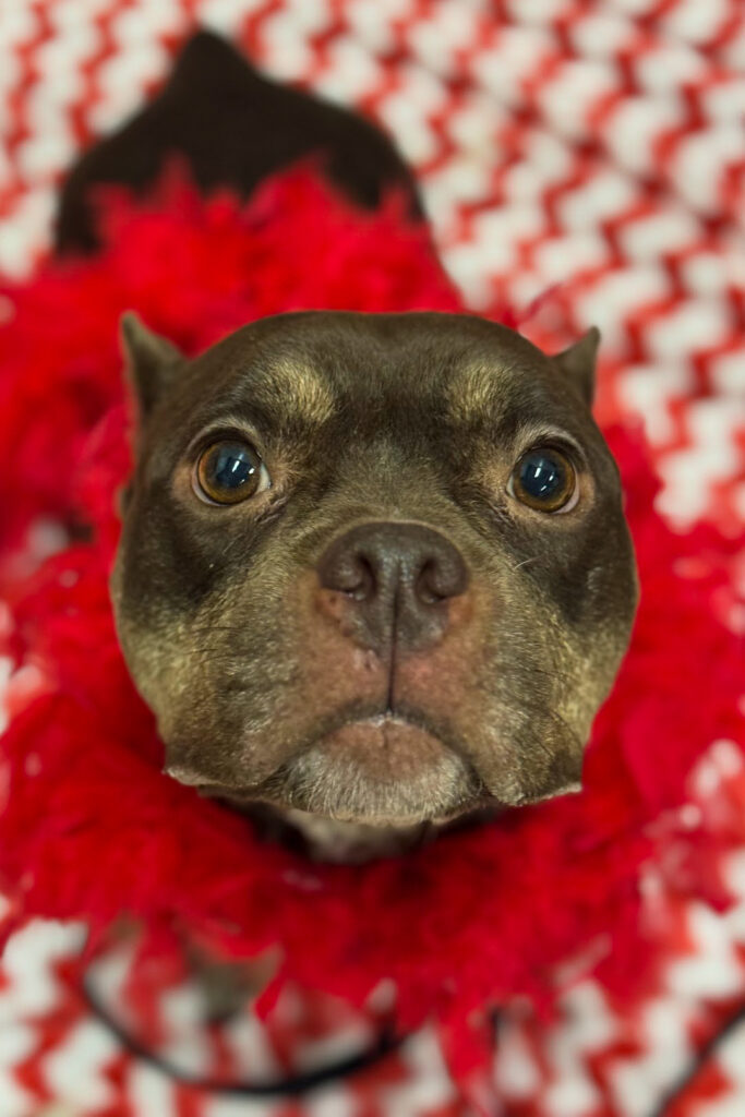Roxyce is a low-riding nugget complete with a sweet face, enthusiastic booty wiggles, and a talent for worming her way into you heart quickly. She seems to do fine around other dogs but mostly prefers to mind her own business, thank you very much. With people, she’s affectionate, easy to love, and clearly ready to take her couch-hogging responsibilities seriously—immediately, please. Bonus points if you’re into cozy vibes, because this girl absolutely needs a sweater (and a necklace?) and will wear it like a fashion icon. Come meet her.