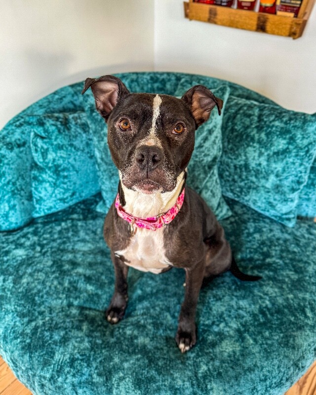 Meet Skipper! As you can see from the photos, he’s rocking some ear folds so cute you’ll feel tempted to spill your secrets and wait for his wise advice. He’s a young pup learning to open up to people—already wagging his tail when he hears baby talk (his favorite language). He’s been in foster care for about a month now, and his foster family has nothing but amazing things to say about him. He loves a good romp, lives for cuddle time, and hands out plenty of kisses. He does great in his crate while they’re away, prefers sleeping under the covers at night, and doubles as a top-tier feet warmer during these frigid temperatures. While in foster Skipper has appeared 𝐩𝐨𝐭𝐭𝐲-𝐭𝐫𝐚𝐢𝐧𝐞𝐝, 𝐜𝐫𝐚𝐭𝐞-𝐭𝐫𝐚𝐢𝐧𝐞𝐝, 𝐬𝐮𝐩𝐞𝐫 𝐝𝐨𝐠-𝐬𝐨𝐜𝐢𝐚𝐥, 𝐚𝐧𝐝 𝐚𝐛𝐬𝐨𝐥𝐮𝐭𝐞𝐥𝐲 𝐚𝐝𝐨𝐫𝐞𝐬 𝐩𝐞𝐨𝐩𝐥𝐞. Skipper is wonderful with the two resident dogs in his foster home (the black and white trio). While he enjoys playtime, snuggling is his ultimate favorite thing.