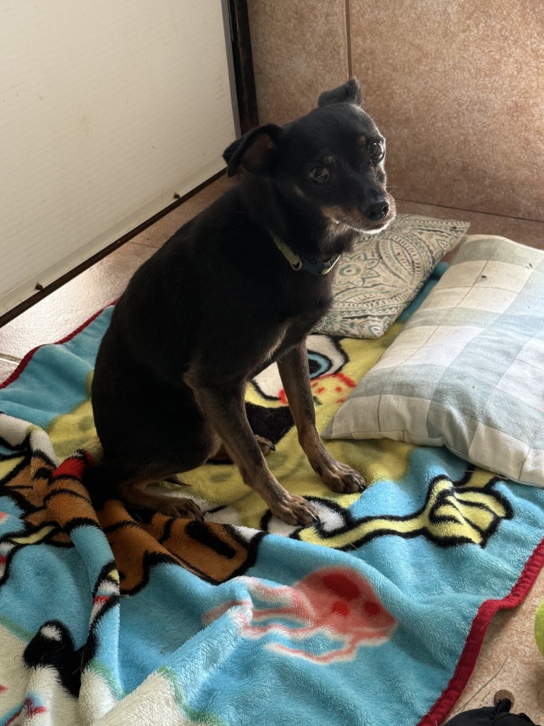 Spike is an almost eleven year old male miniature pincher mix. Spike takes some time to warm up to new people, but he likes going for walks. He gets excited whenever he sees the leash.
