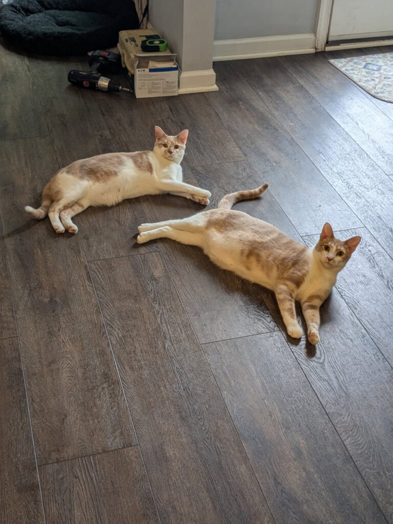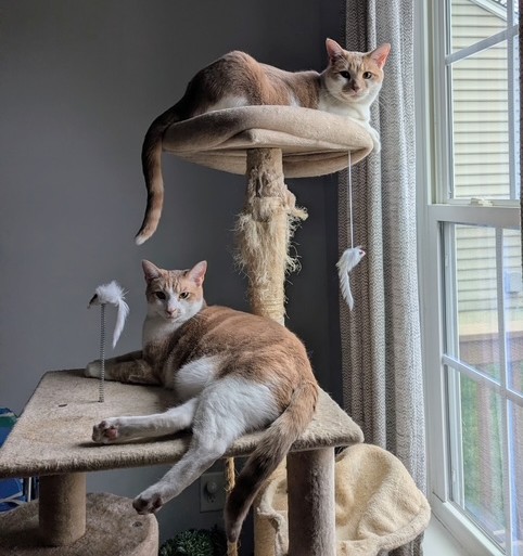 Taz definitely lives up to his name. This spunky boy has all the energy you can imagine, plus some. He loves to play in water and with dangly/stringy toys, which can sometimes include your shoelaces, and his sister Tweety. Tweety, like her brother, is incredibly playful, however she also enjoys lots of cuddle time and is a certified lap cat. She also loves to help her foster mom sweep on cleaning days. Taz and Tweety would be fantastic in any home!