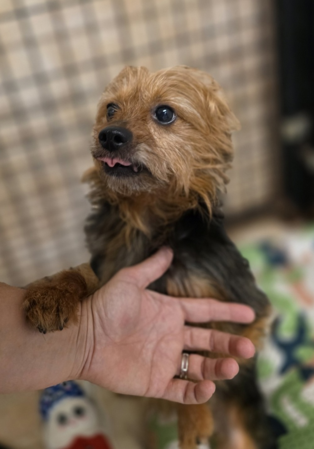 Teddy is an almost seven year old male yorki. Teddy loves playing with toys and going for walks. He is a grumpy old man however and does not like to be bothered. Teddy would do best with no kids and with someone who will let him do what he wants.