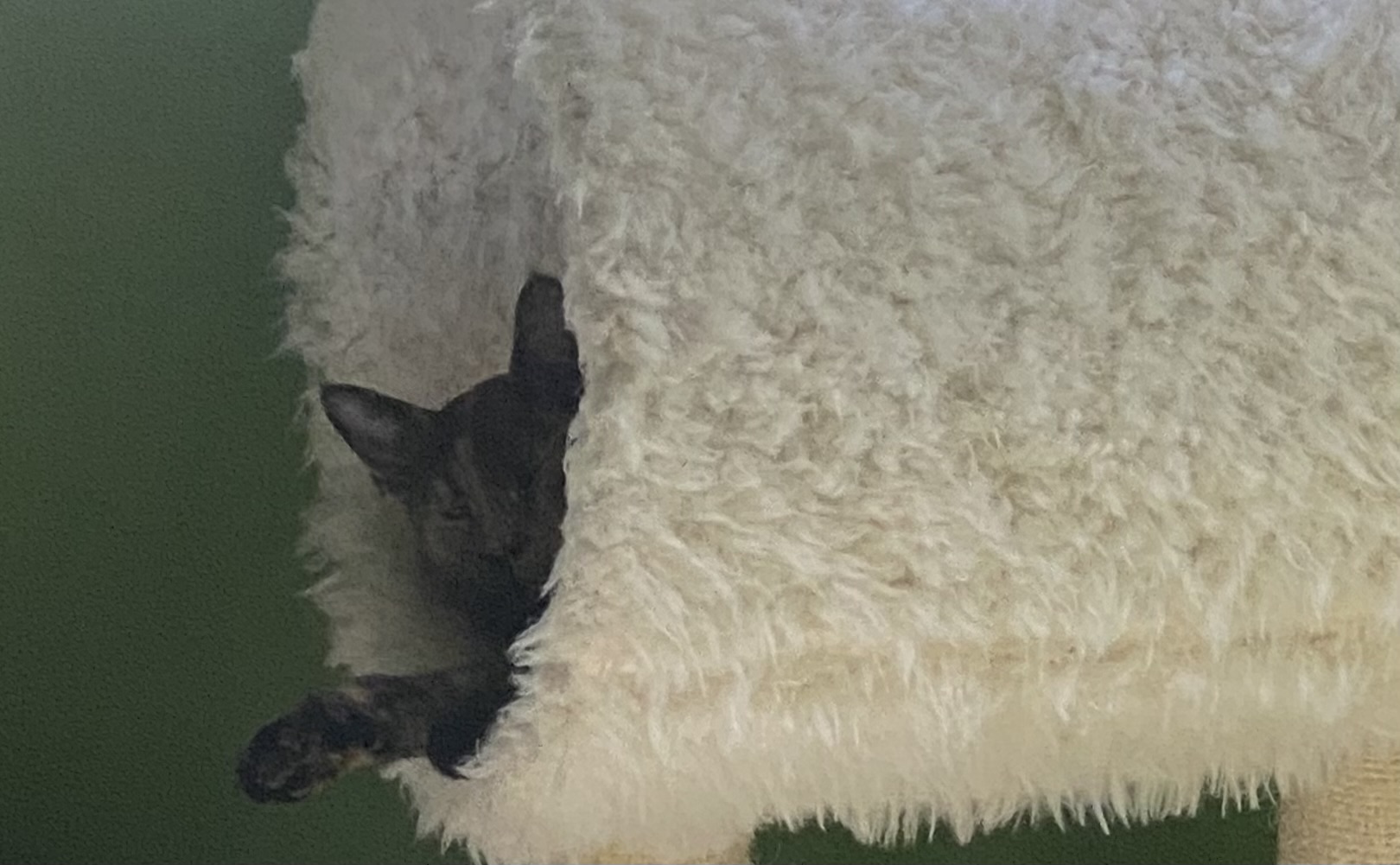 Veruca is the life of the party! This gorgeous tortie girl can’t wait for her next adventure. She loves to play and explore. She’s a smart girl, and calculates her next escapade while surveying her kingdom from above where she can observe all the possibilities at once. Veruca does well with other cats, dogs, and people of all sizes. Adoption app: https://www.purrfectadditionsinc.com/adopt