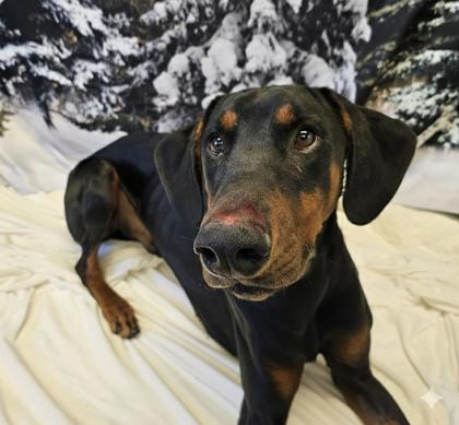 Boone is a 2-year-old Doberman, neutered, and up to date on all his vetting. He came to us from a shelter in Mississippi and has been impressing us ever since! This handsome guy is people-pleasing through and through — he loves attention, knows tricks, and takes treats like a pro. Boone is very social with humans, but he’s selective with other dogs, so a dog meet-and-greet is required, or he may do best as the only dog in his new home. With his good looks, smart personality, and loving nature, Boone is ready to find a family who will give him all the love (and treats!) he deserves.